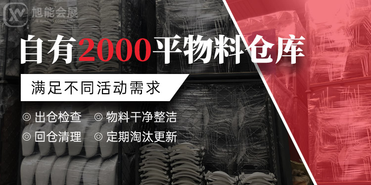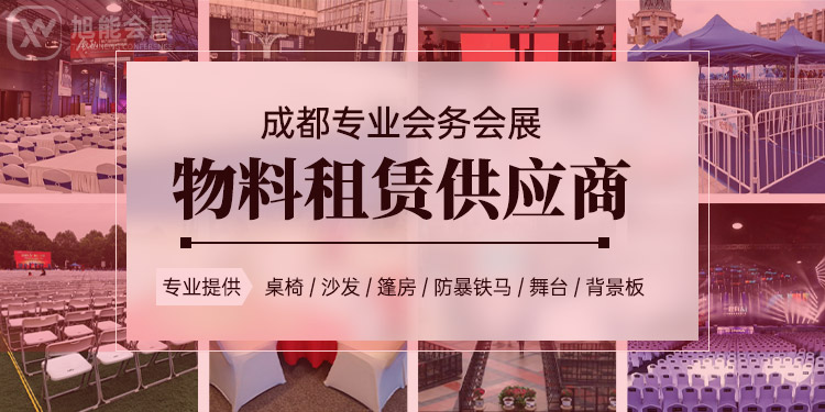 旭能会展服务(成都)有限公司是目前西南地区规模较大,拥有超大仓储中心、物料数量,物料品类齐全的会务会展物料租赁供应商。